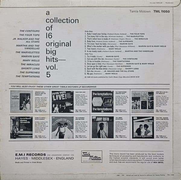 A Collection Of 16 Original Big Hits Vol. 5 Vinyl Record LP Tamla Motown 1966
