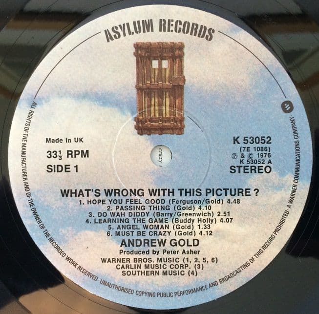 ANDREW GOLD What's Wrong With This Picture? Vinyl Record LP Asylum 1976