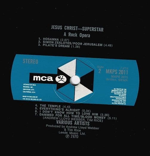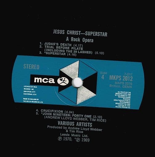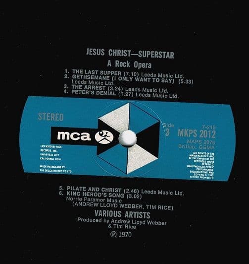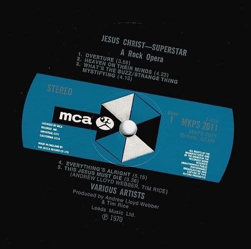 ANDREW LLOYD WEBBER AND TIM RICE Jesus Christ Superstar Vinyl Record LP MCA 1970
