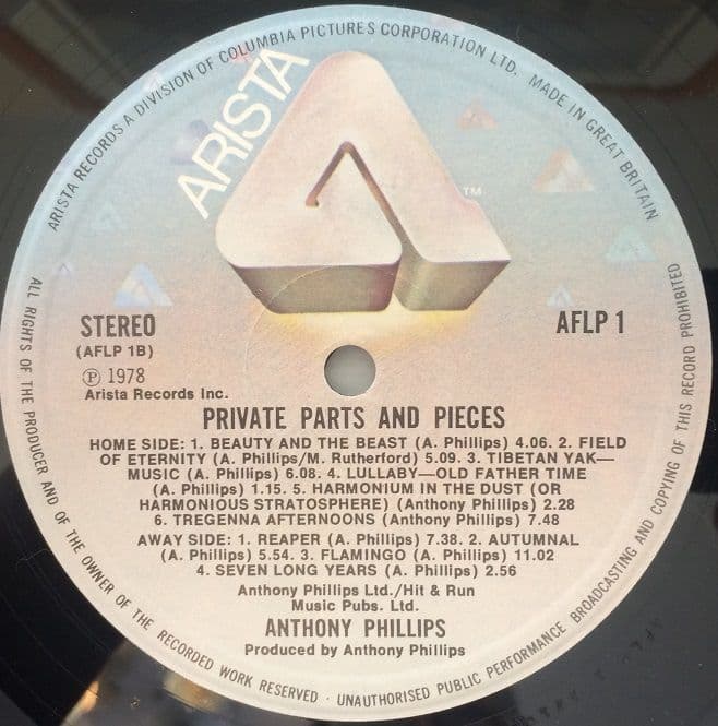 ANTHONY PHILLIPS Private Parts And Pieces Vinyl Record LP Arista 1978