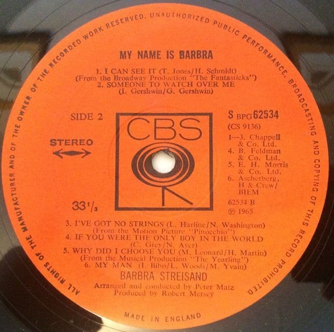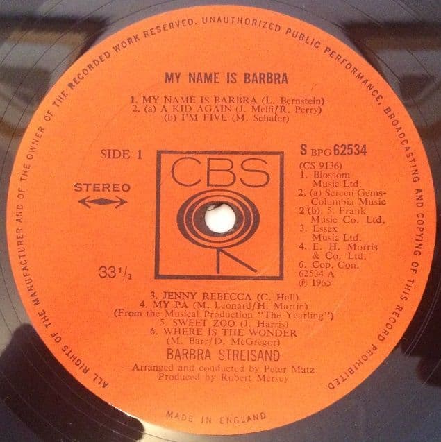 BARBRA STREISAND My Name Is Barbra Vinyl Record LP CBS 1965