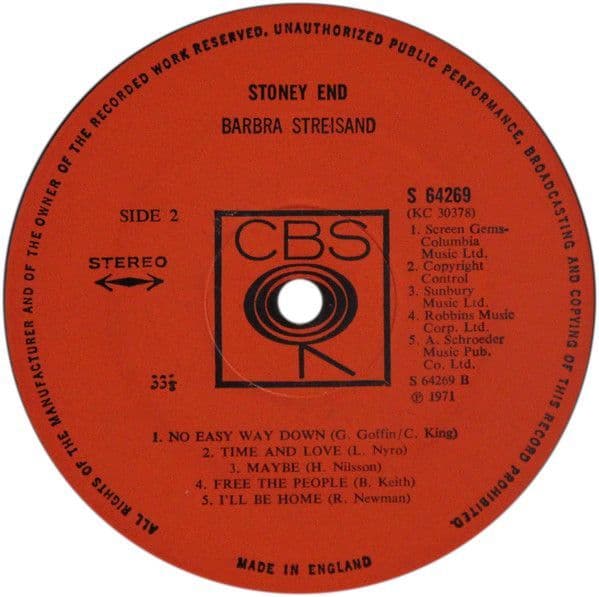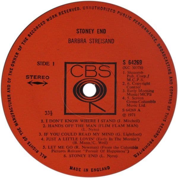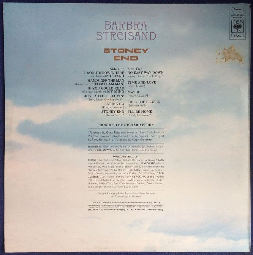 BARBRA STREISAND Stoney End Vinyl Record LP CBS 1971