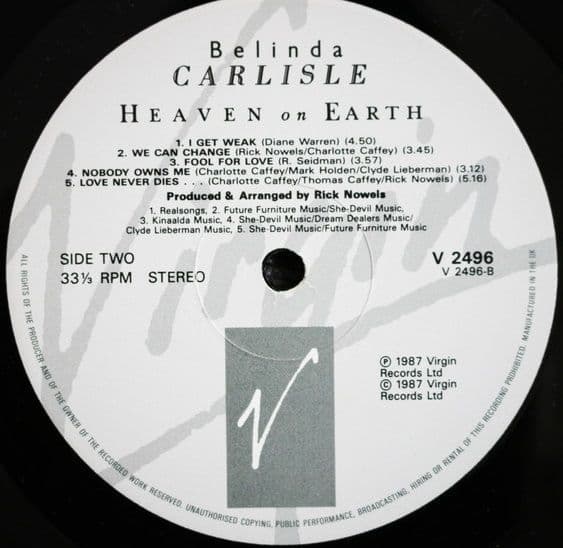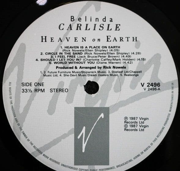 BELINDA CARLISLE Heaven On Earth Vinyl Record LP Virgin 1987