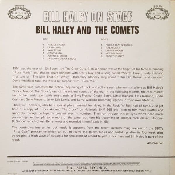 BILL HALEY AND HIS COMETS Bill Haley On Stage Vinyl Record LP Hallmark 1968
