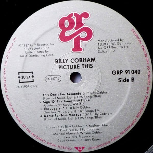 BILLY COBHAM Picture This Vinyl Record LP GRP 1987