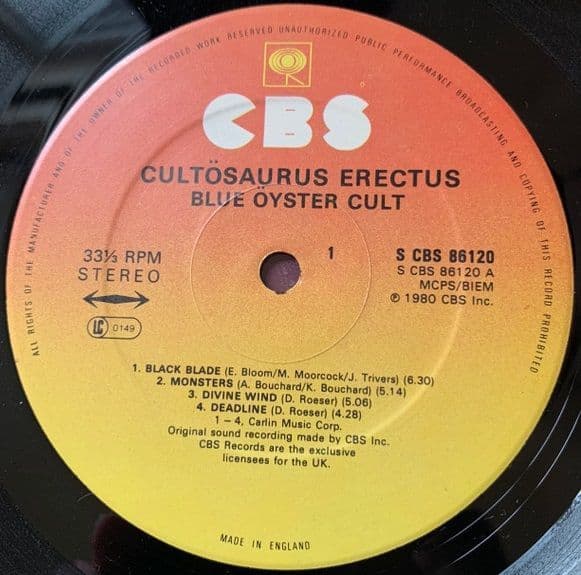 BLUE OYSTER CULT Cultosaurus Erectus Vinyl Record LP CBS 1980