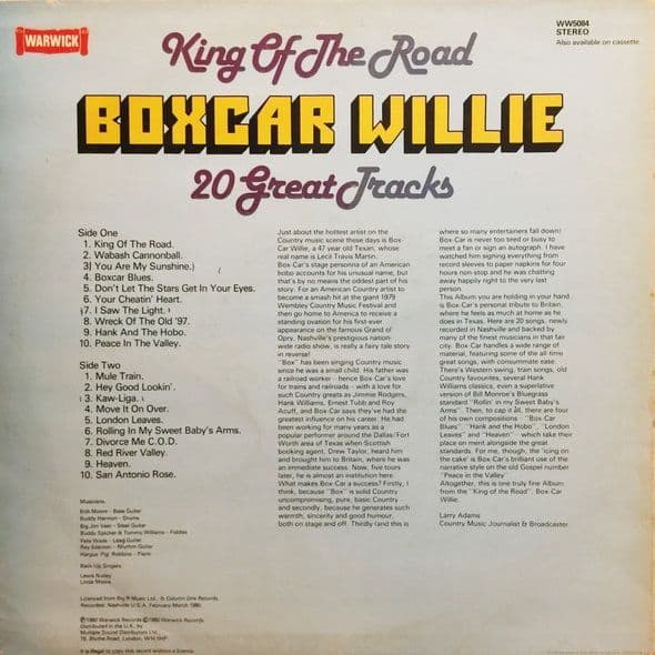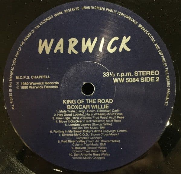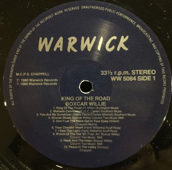 BOXCAR WILLIE King Of The Road Vinyl Record LP Warwick 1980
