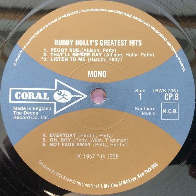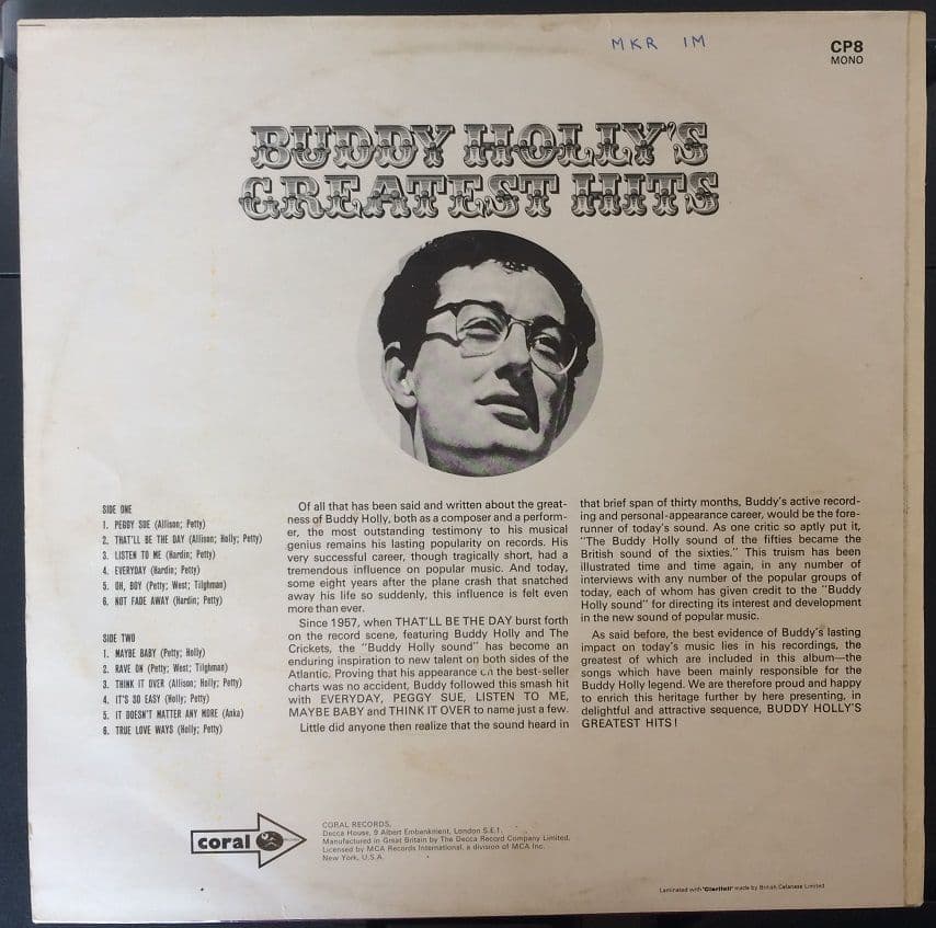 BUDDY HOLLY Greatest Hits Vinyl Record LP Coral 1968