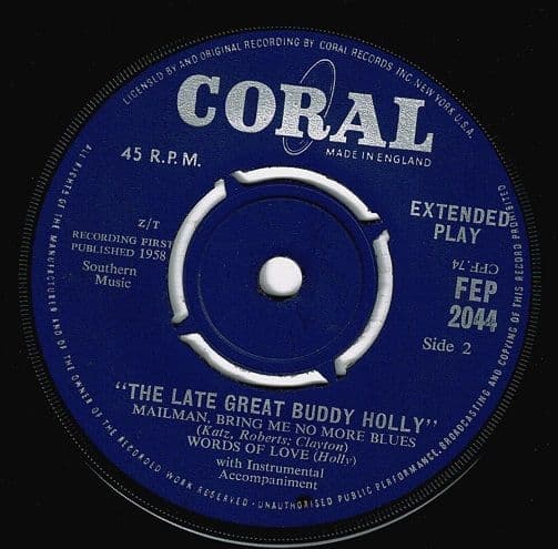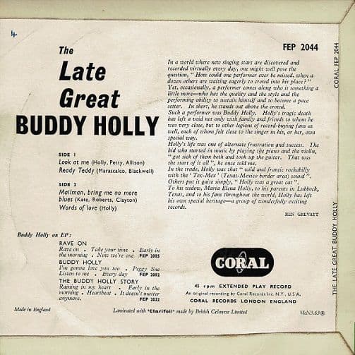 BUDDY HOLLY The Late Great Buddy Holly EP Vinyl Record 7 Inch Coral 1963