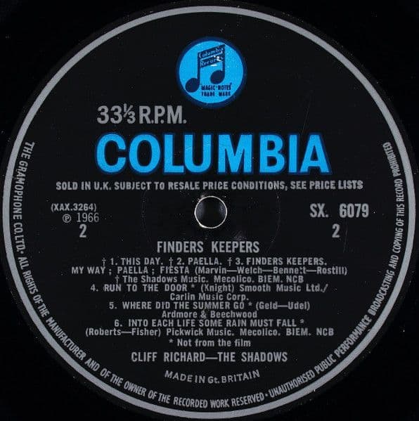 CLIFF RICHARD AND THE SHADOWS Finders Keepers Vinyl Record LP Columbia 1966