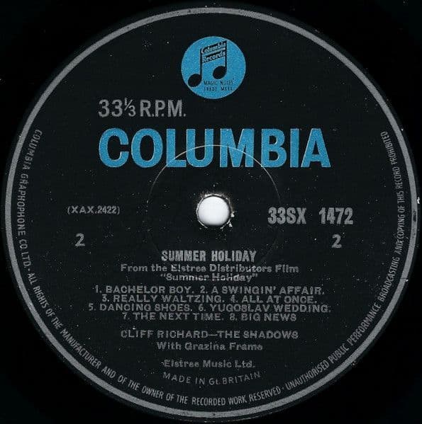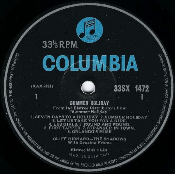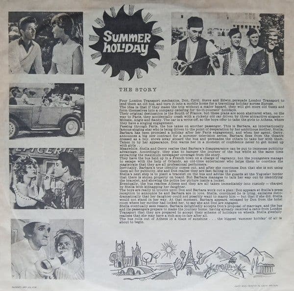 CLIFF RICHARD AND THE SHADOWS Summer Holiday Vinyl Record LP Columbia 1963