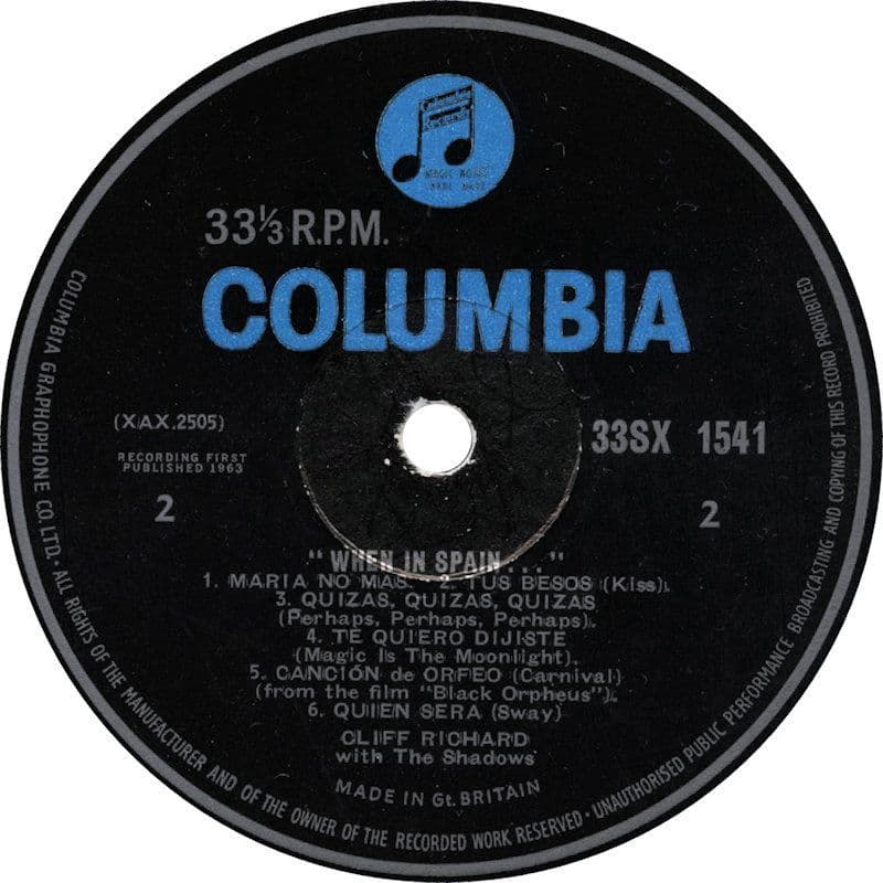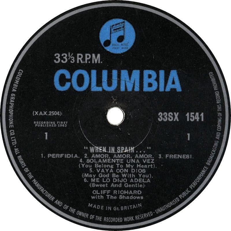 CLIFF RICHARD AND THE SHADOWS When In Spain Vinyl Record LP Columbia 1963