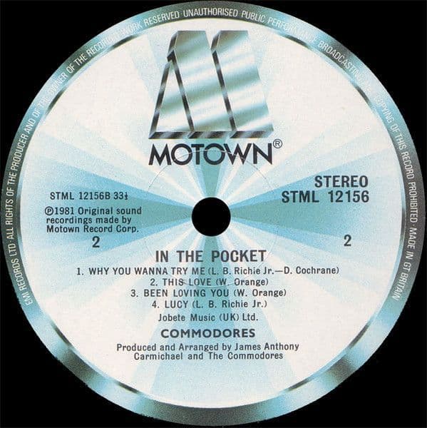 COMMODORES In The Pocket Vinyl Record LP Motown 1981
