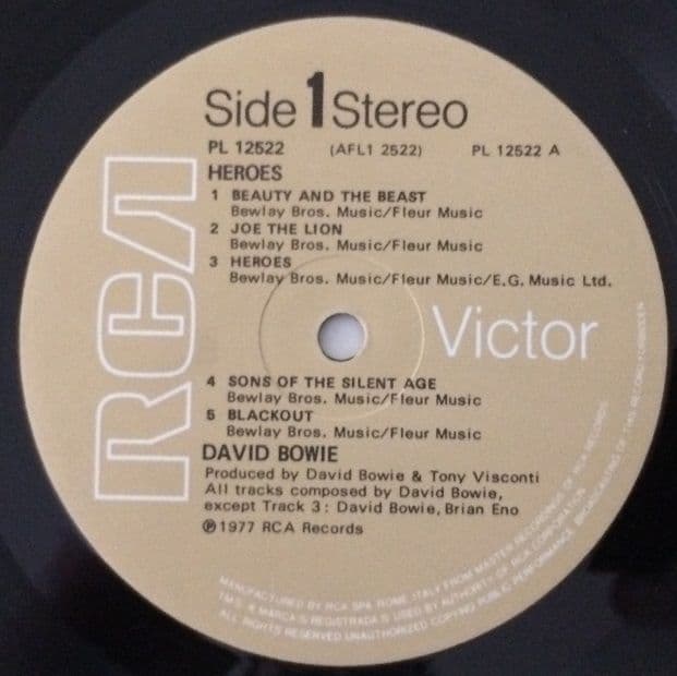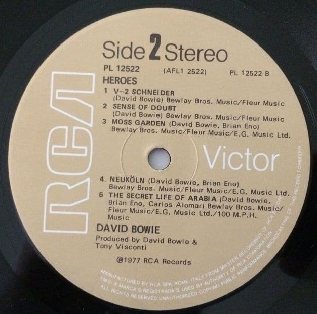 DAVID BOWIE Heroes Vinyl Record LP Italian RCA Victor 1977