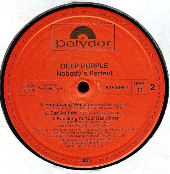 DEEP PURPLE Nobody's Perfect Vinyl Record LP Polydor 1988