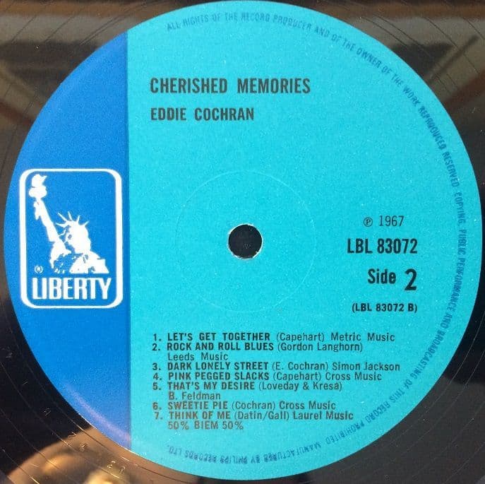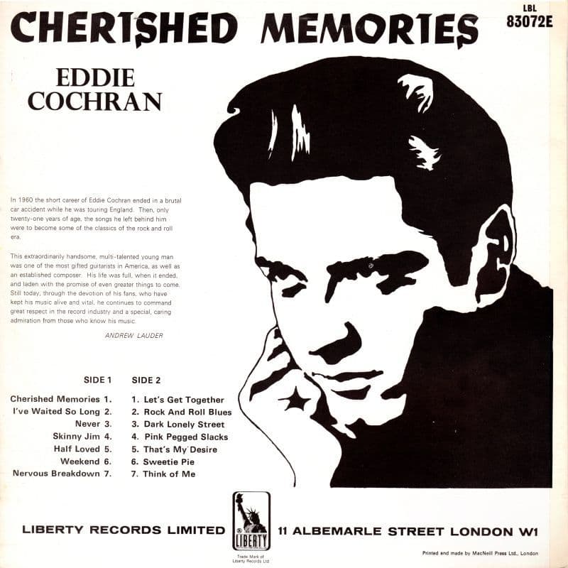 EDDIE COCHRAN Cherished Memories Vinyl Record LP Liberty 1967.