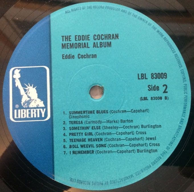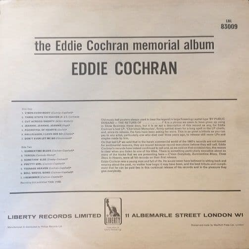 EDDIE COCHRAN The Eddie Cochran Memorial Album Vinyl Record LP Liberty 1967