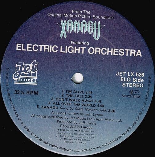 ELECTRIC LIGHT ORCHESTRA (ELO) Xanadu Vinyl Record LP Jet 1980