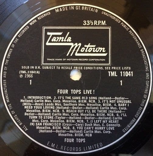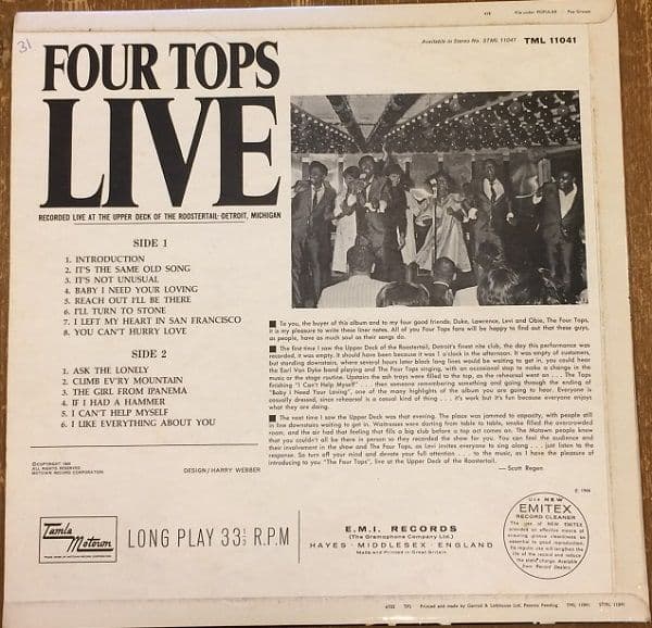 FOUR TOPS Four Tops Live! Vinyl Record LP Tamla Motown 1966