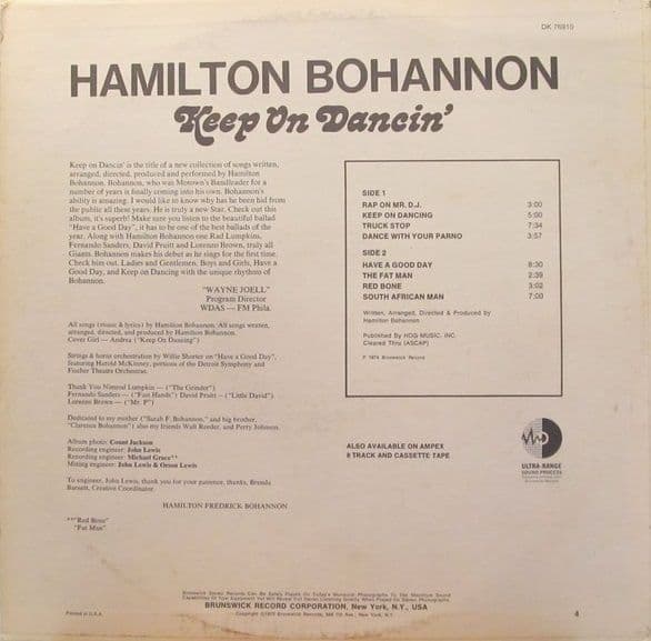 HAMILTON BOHANNON Keep On Dancin' Vinyl Record LP US Dakar 1974