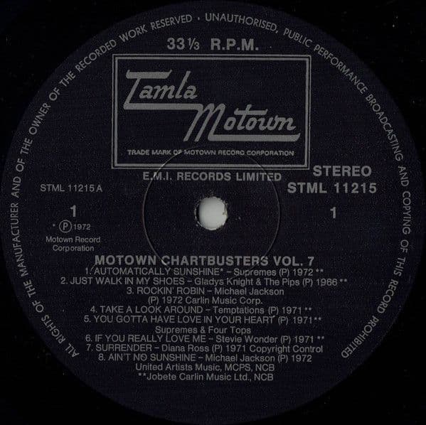 (Original 1st Pressing with Black/Silver Tamla Motown Label. Housed in Rotating Wheel Picture Sleeve)