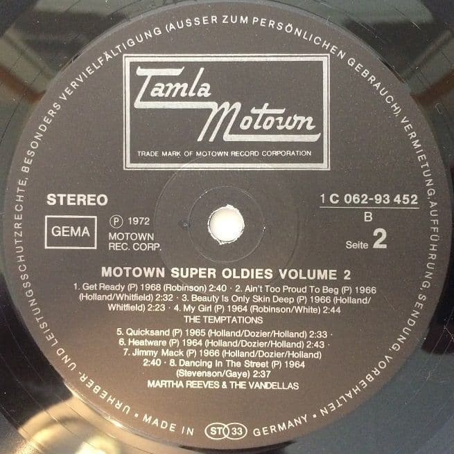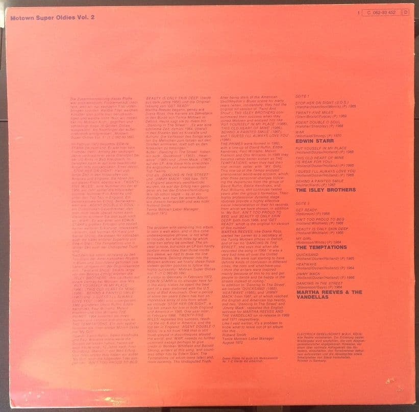 Motown Super Oldies Vol. 2 Vinyl Record LP German Tamla Motown 1972
