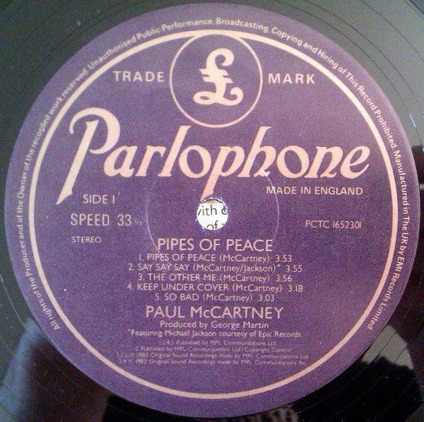 PAUL McCARTNEY Pipes Of Peace Vinyl Record LP Parlophone 1983
