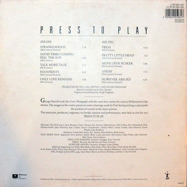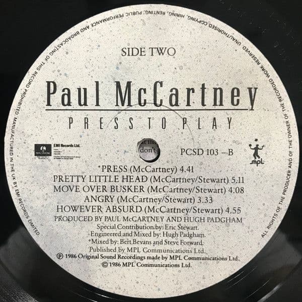 PAUL McCARTNEY Press To Play Vinyl Record LP Parlophone 1986