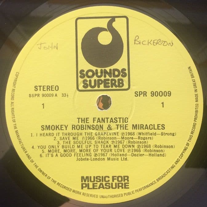 (UK Pressing with Yellow Sounds Superb Label. Housed in Front Laminated Picture Sleeve)