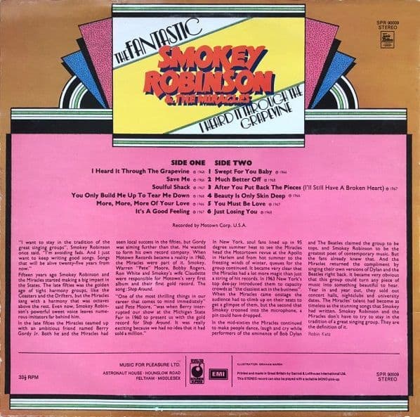 SMOKEY ROBINSON & THE MIRACLES The Fantastic Smokey Robinson & The Miracles LP Sounds Superb 1973
