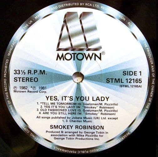 SMOKEY ROBINSON Yes, It's You Lady Vinyl Record LP Motown 1982