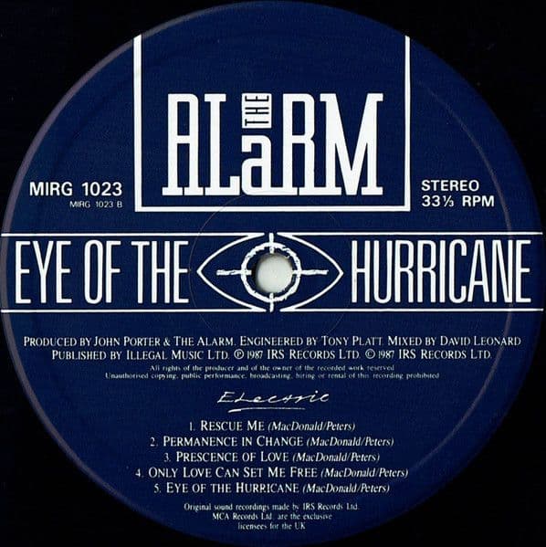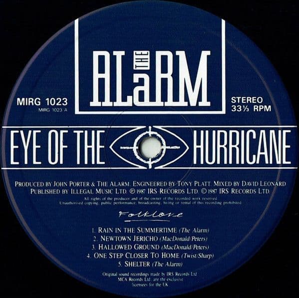 THE ALARM Eye Of The Hurricane Vinyl Record LP I.R.S. 1987