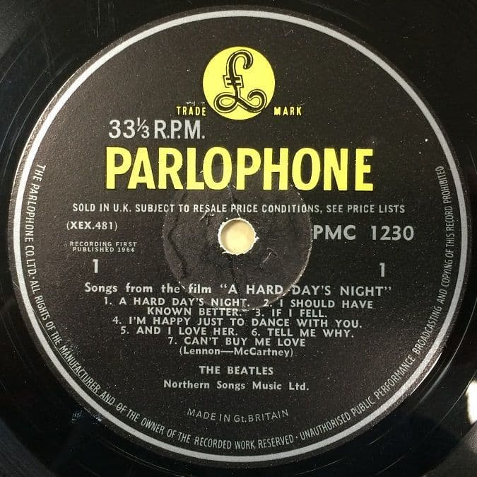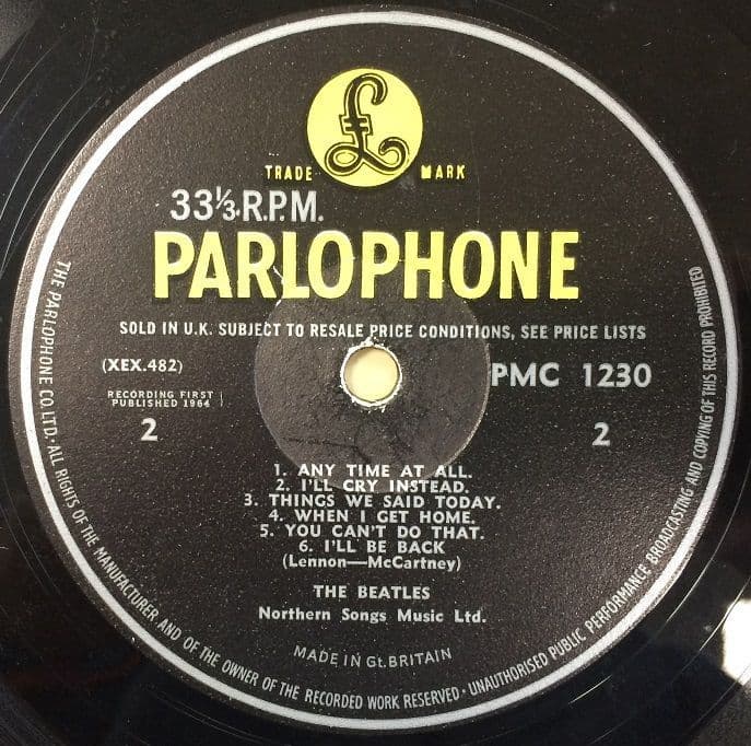(Original Mono 1st Pressing with Black/Yellow Parlophone Label, with "THE PARLOPHONE CO. LTD.”, "RECORDING FIRST PUBLISHED 1964” and “Sold in U.K...” Label text. Housed in Front Laminated Ernest J. Day Sleeve with mid-sized "mono" on the front, complete with Emitex inner sleeve. 3N/3N Matrix)