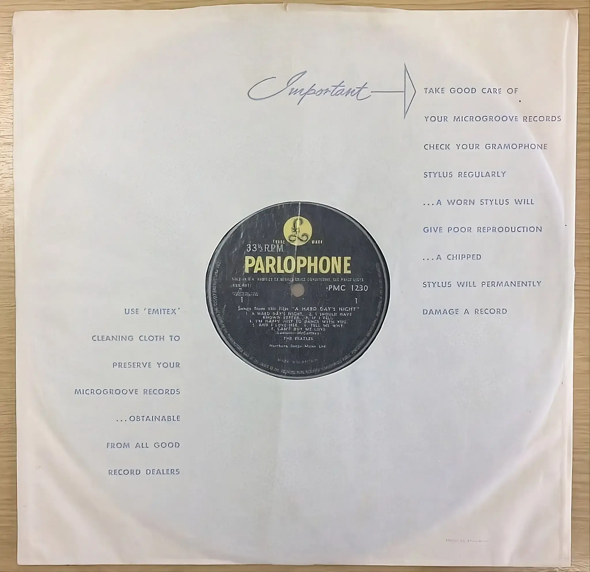 THE BEATLES A Hard Day’s Night Vinyl Record LP Parlophone 1964 3N/3N Matrix 1 GAM/2 GGO