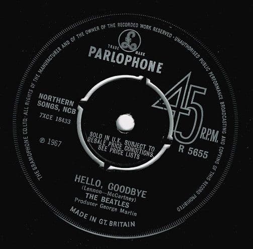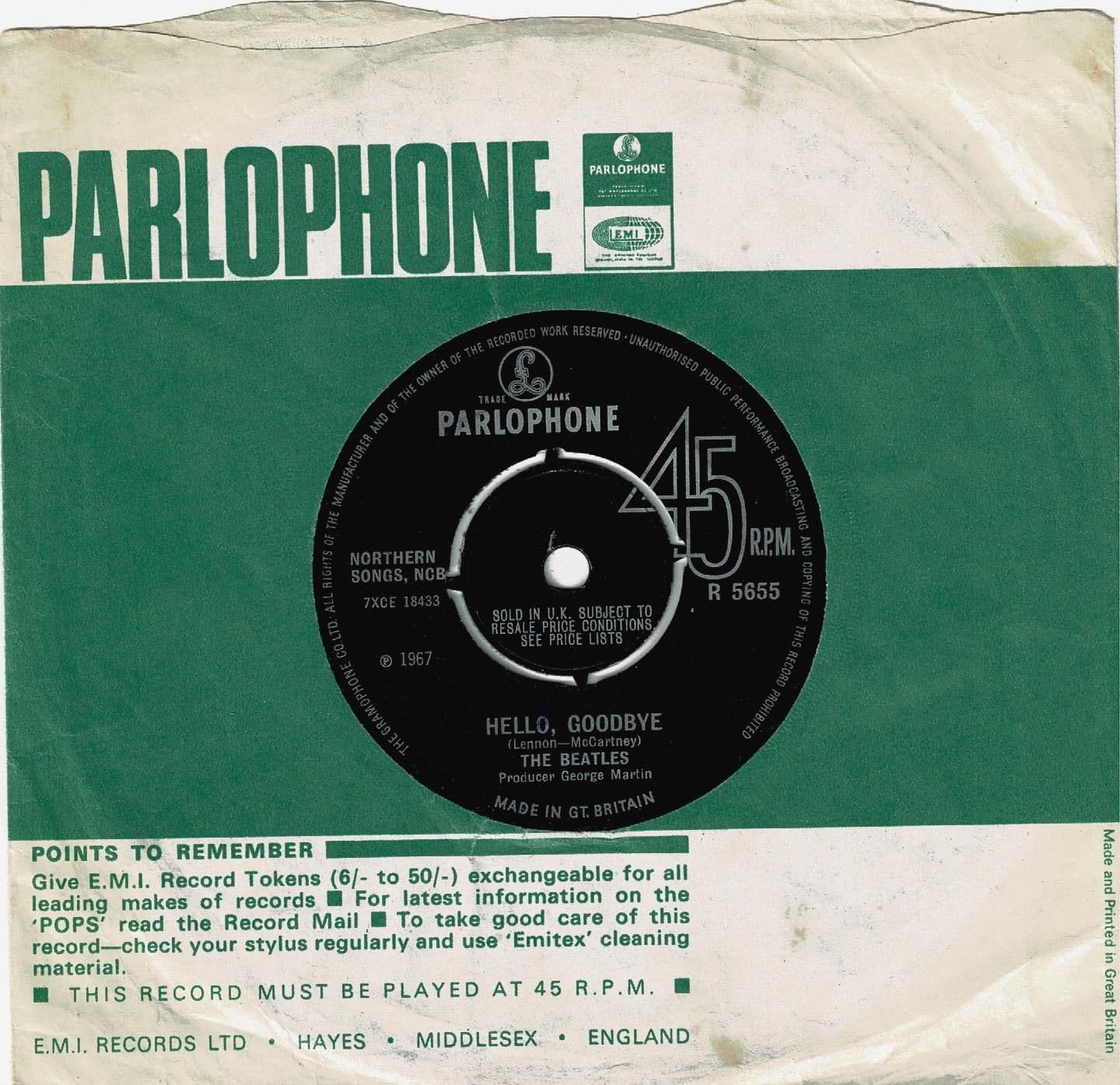 THE BEATLES Hello, Goodbye Vinyl Record 7 Inch Parlophone 1967..