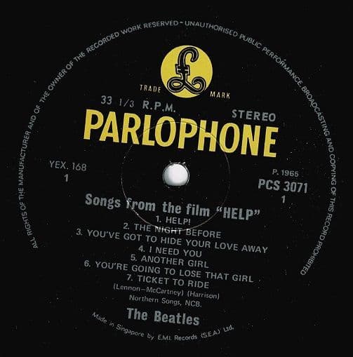 THE BEATLES Help Vinyl Record LP Singapore Parlophone