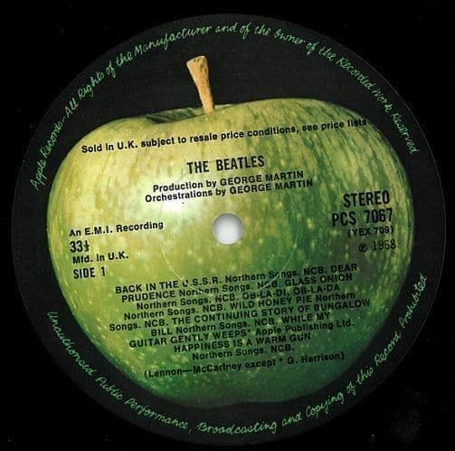 (Original UK Numbered Stereo 1st Pressing with Dark Green Apple Labels that have the 'Sold in U.K.' label text. Housed in Fully Laminated Top Opening Gatefold Picture Sleeve, complete with original black inner sleeves, 4 photos, foldout poster, and scarce original spacer sheet. No. 0152314. Matrix: -2/-1/-1/-1)