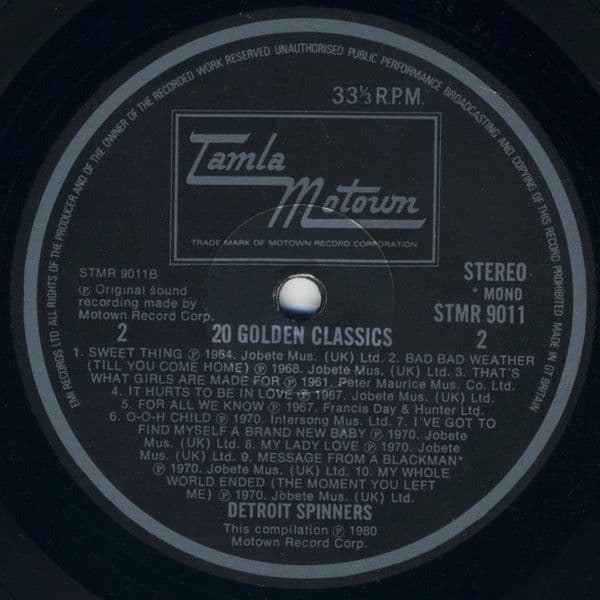 THE DETROIT SPINNERS 20 Golden Classics Vinyl Record LP Tamla Motown 1980