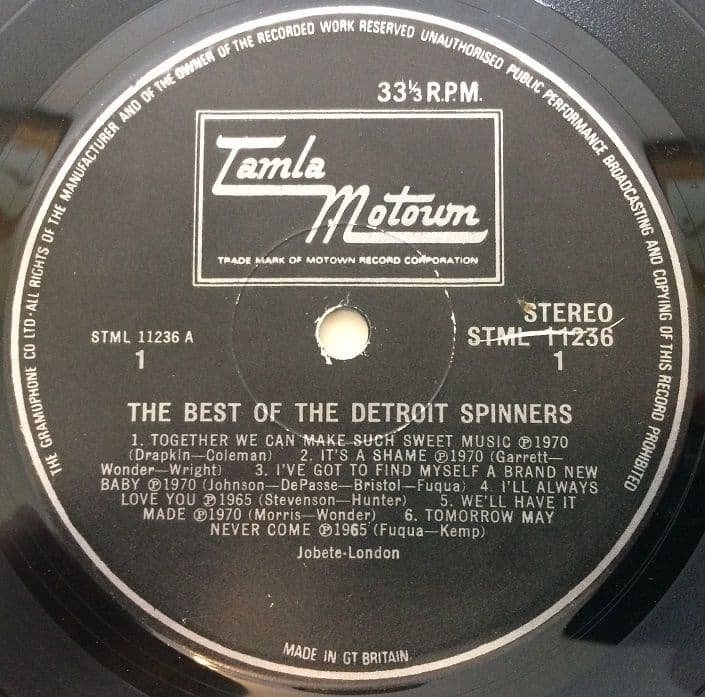 THE DETROIT SPINNERS The Best Of The Detroit Spinners Vinyl Record LP Tamla Motown 1973