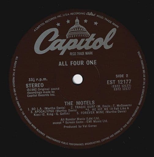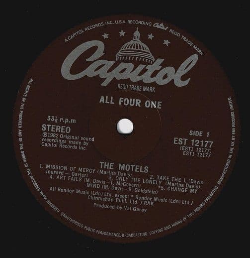 THE MOTELS All Four One Vinyl Record LP Capitol 1982