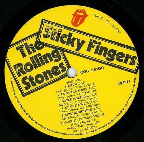 THE ROLLING STONES Sticky Fingers Vinyl Record LP Rolling Stones 1971.