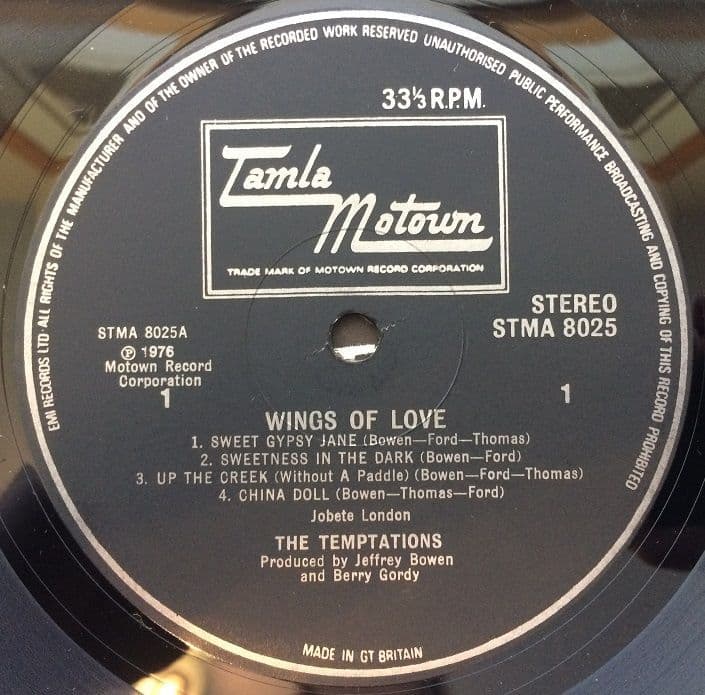 THE TEMPTATIONS Wings Of Love Vinyl Record LP Tamla Motown 1976