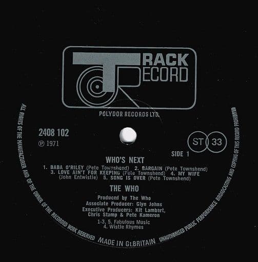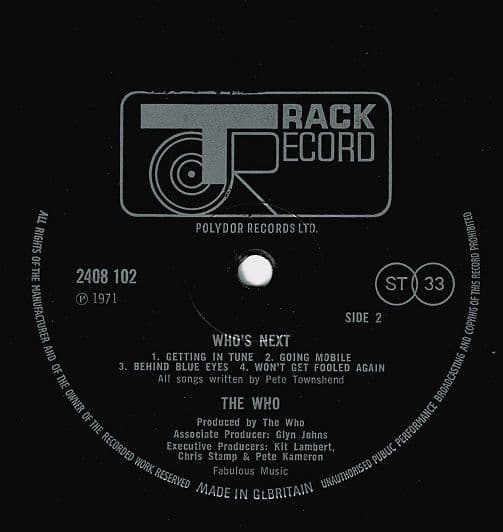THE WHO Who's Next Vinyl Record LP Track 1971